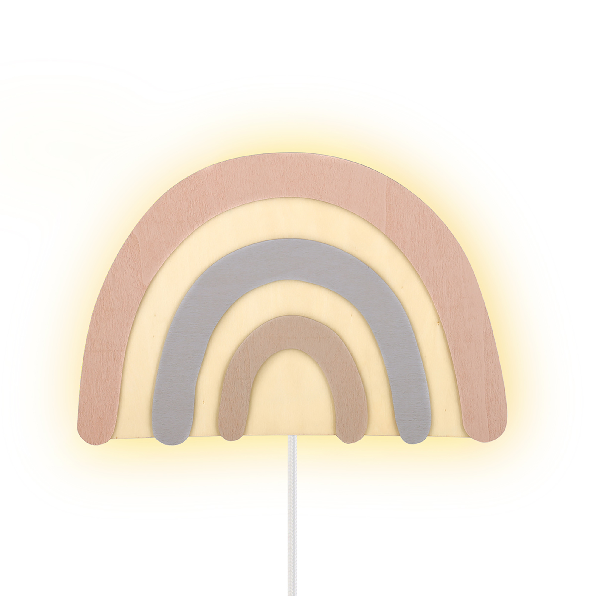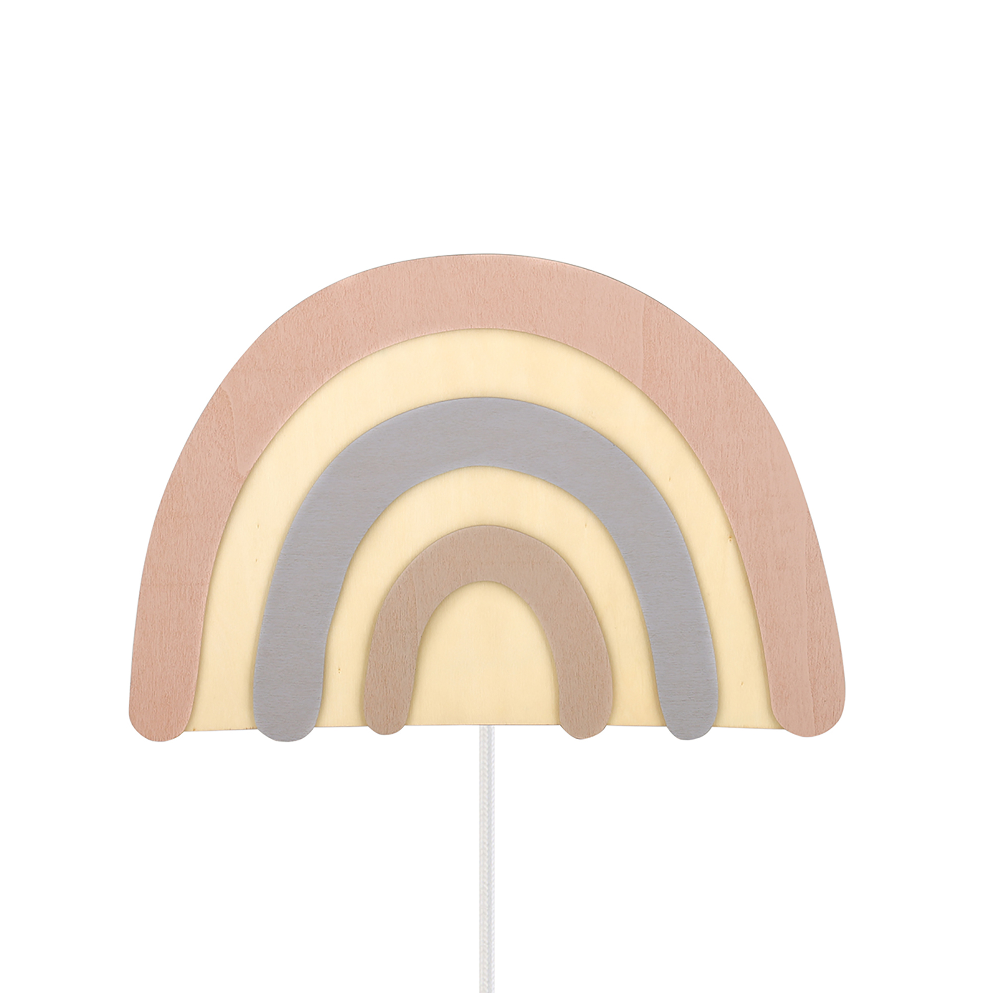 Rainbow FSC plywood shade with white metal base.