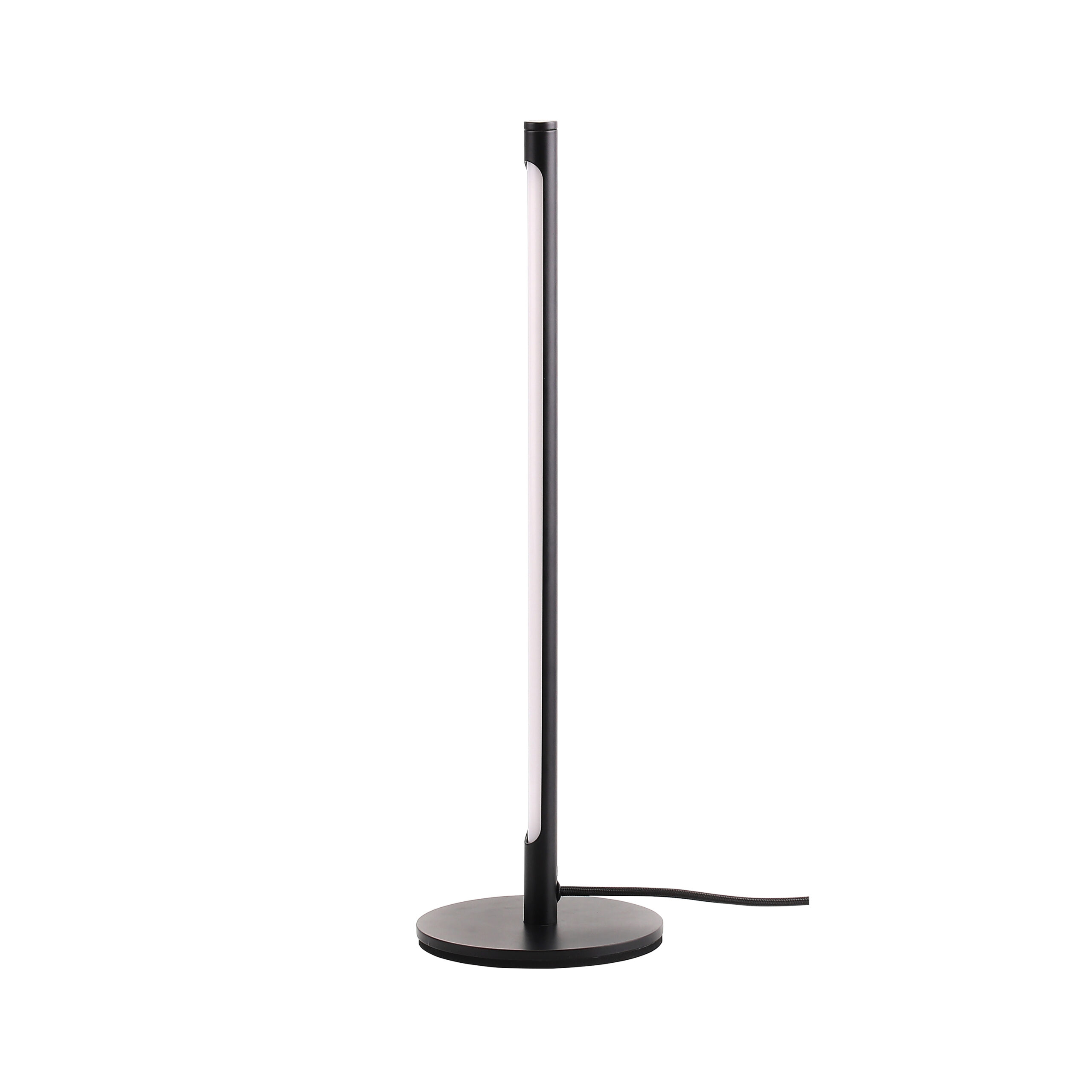 Matte black metal part with plastic opal diffuser.