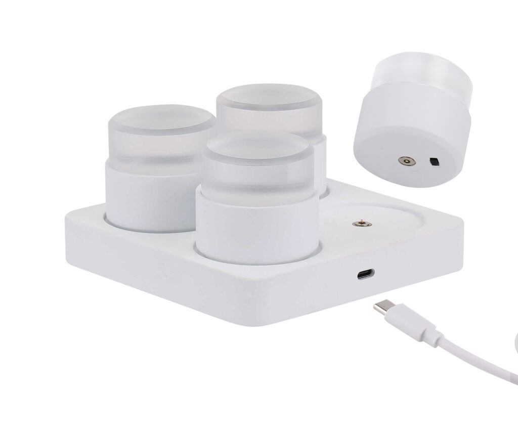 4 x Candle Lamps, 1 x charging base, 1 x 1m changing cable.