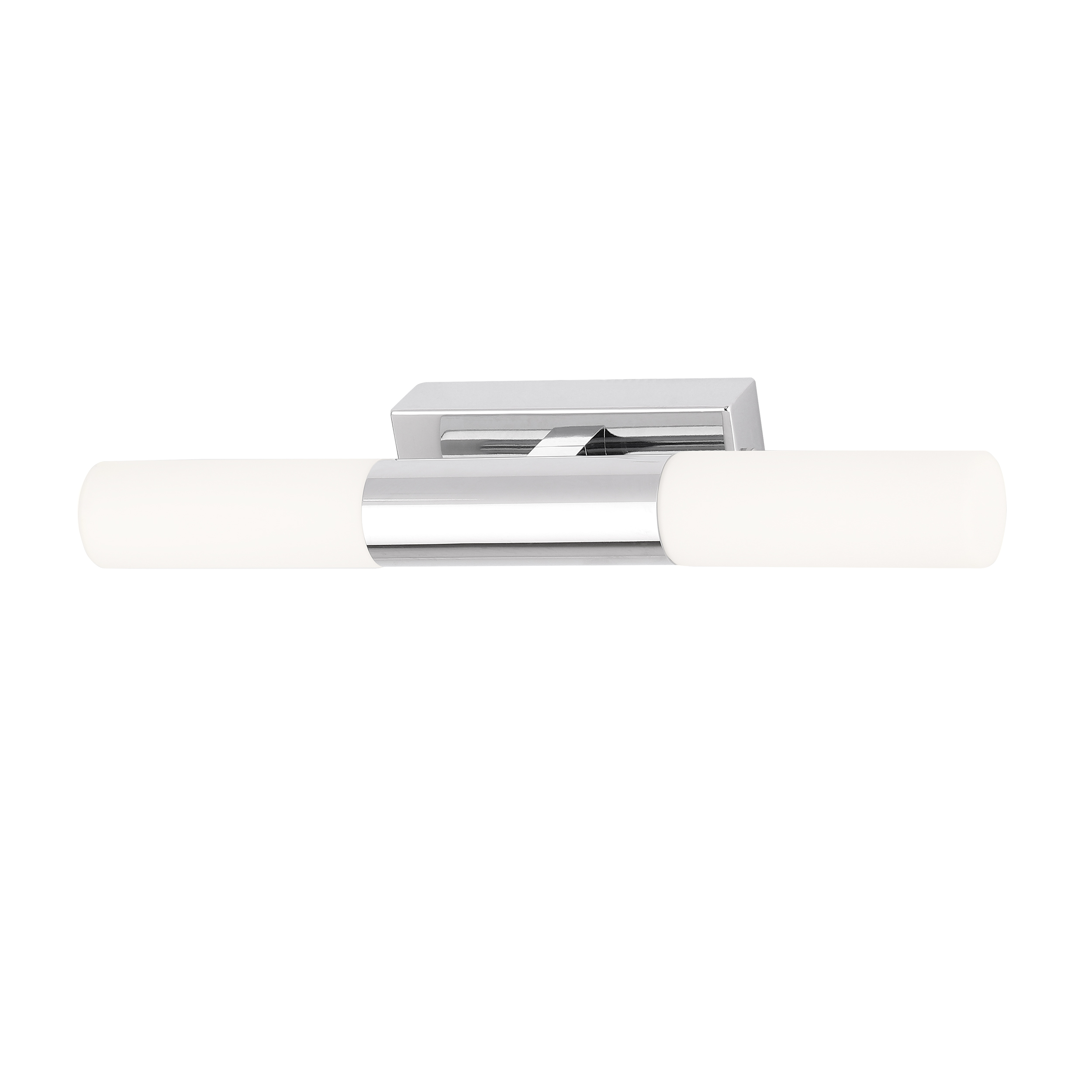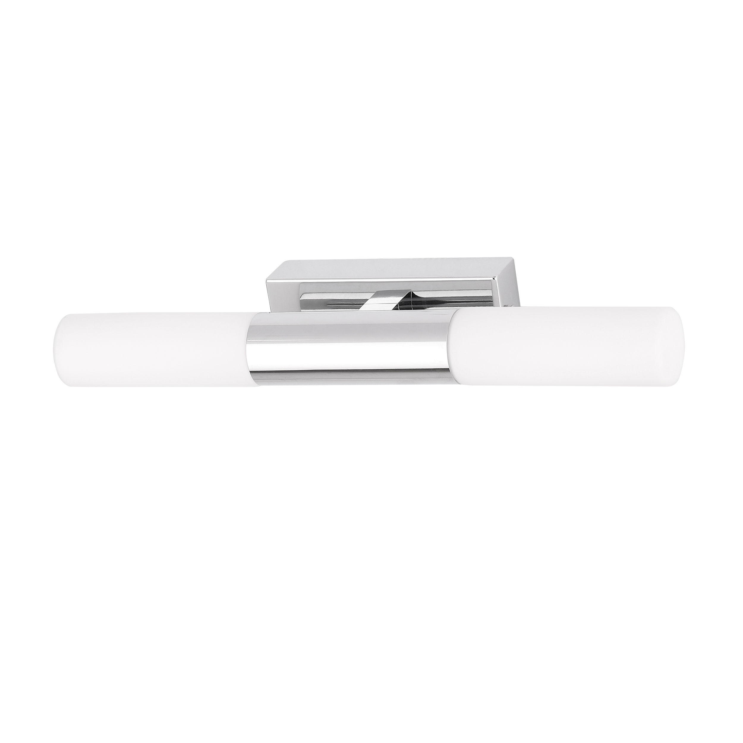 Chrome base with opal white glass shade.
